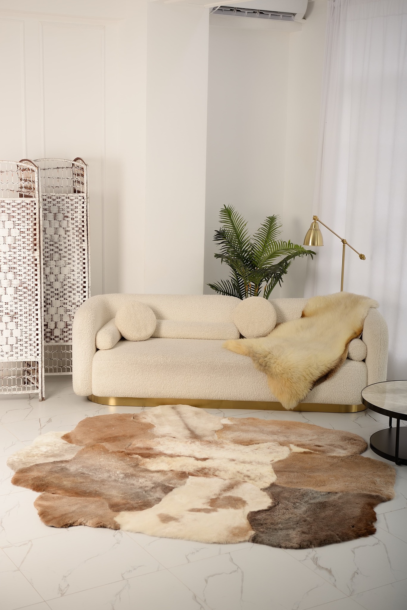 Ковер «Мосси» выполнен из натуральных светло-коричневых овечьих шкур — идеальное сочетание тепла и естественной красоты. Его мягкая текстура и природный оттенок создают атмосферу уюта и гармонии в любом интерьере.